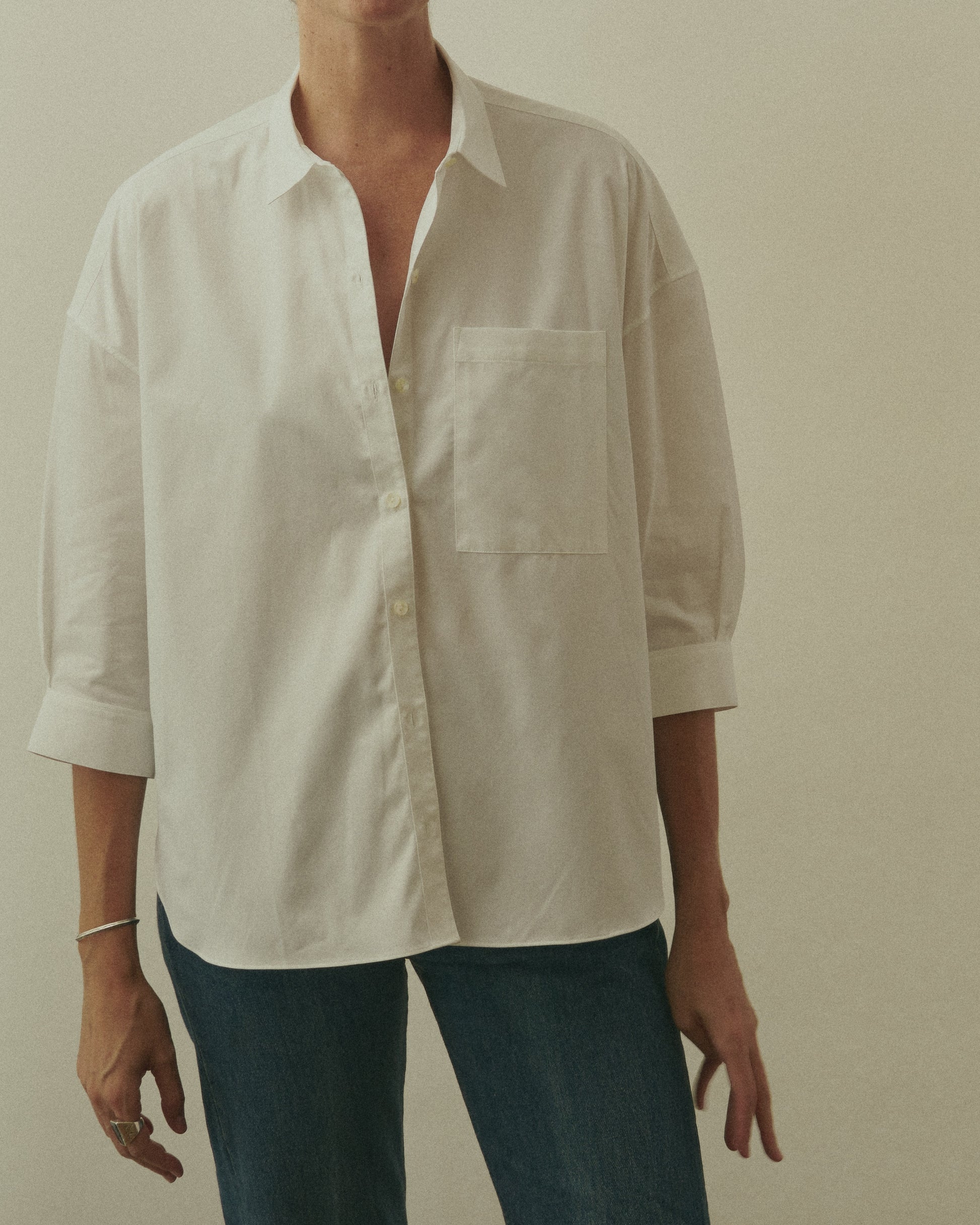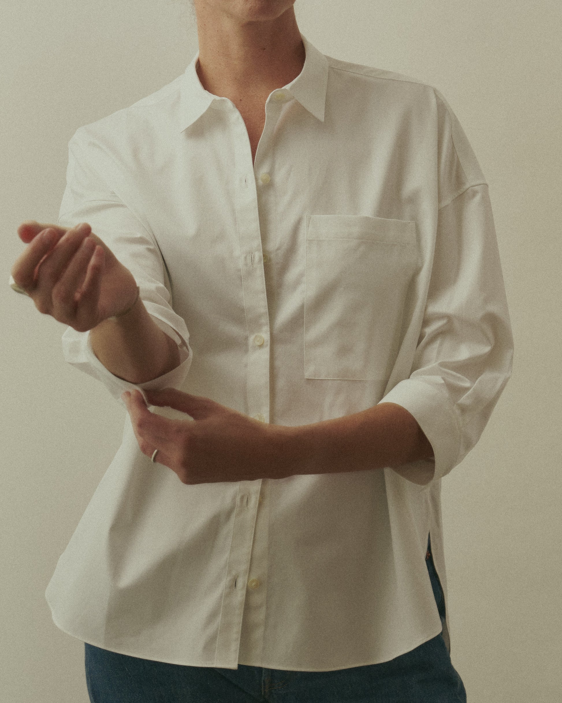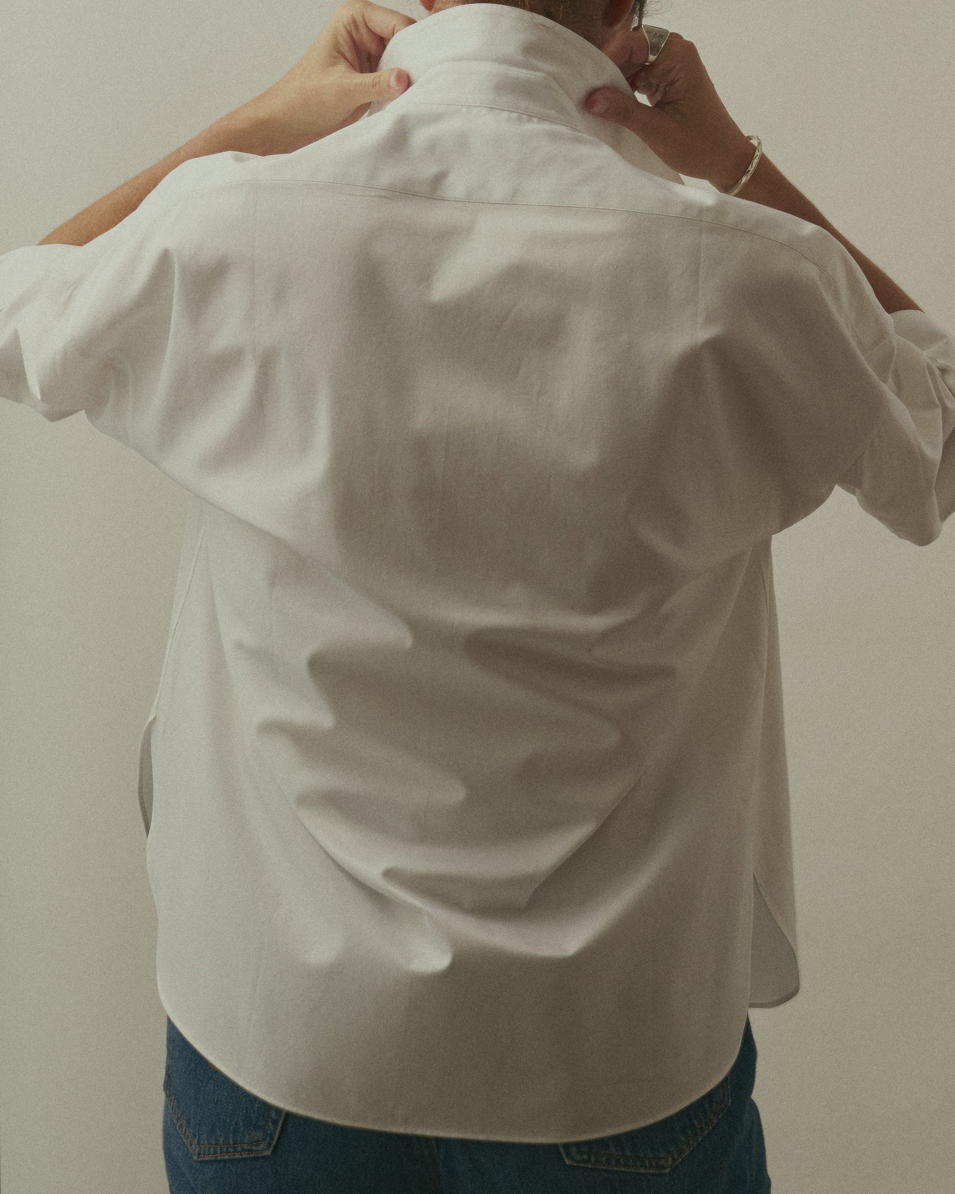 A shirt with many fans. The Baker’s Apprentice sports a dropped shoulder and a slightly oversized fit. It is a wardrobe workhorse, serving you equally for mid-week errands, coffee meetings, and garden cocktail hours.