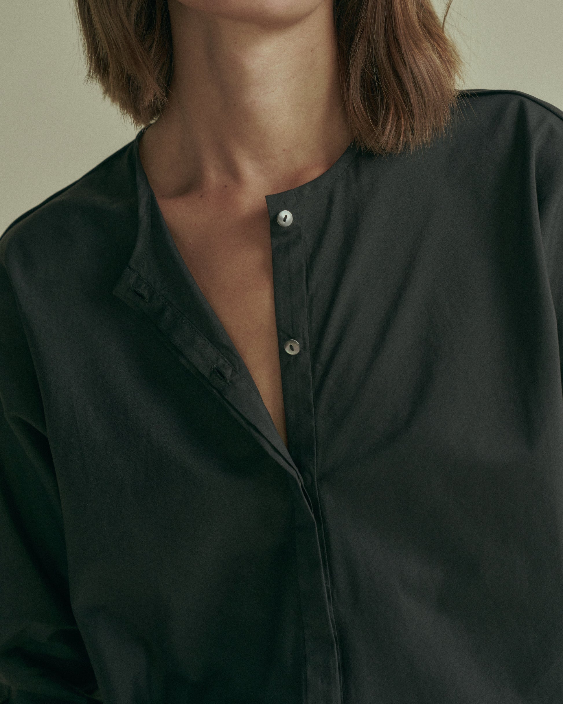 An understated showstopper, wear her buttoned to the top for a Thursday evening gallery opening or unbutton a little too low and gaze across the table at date night. This style is inspired by the form and transparency of Noguchi lanterns. The pattern pieces, the inner architecture, and overlapping of edges.