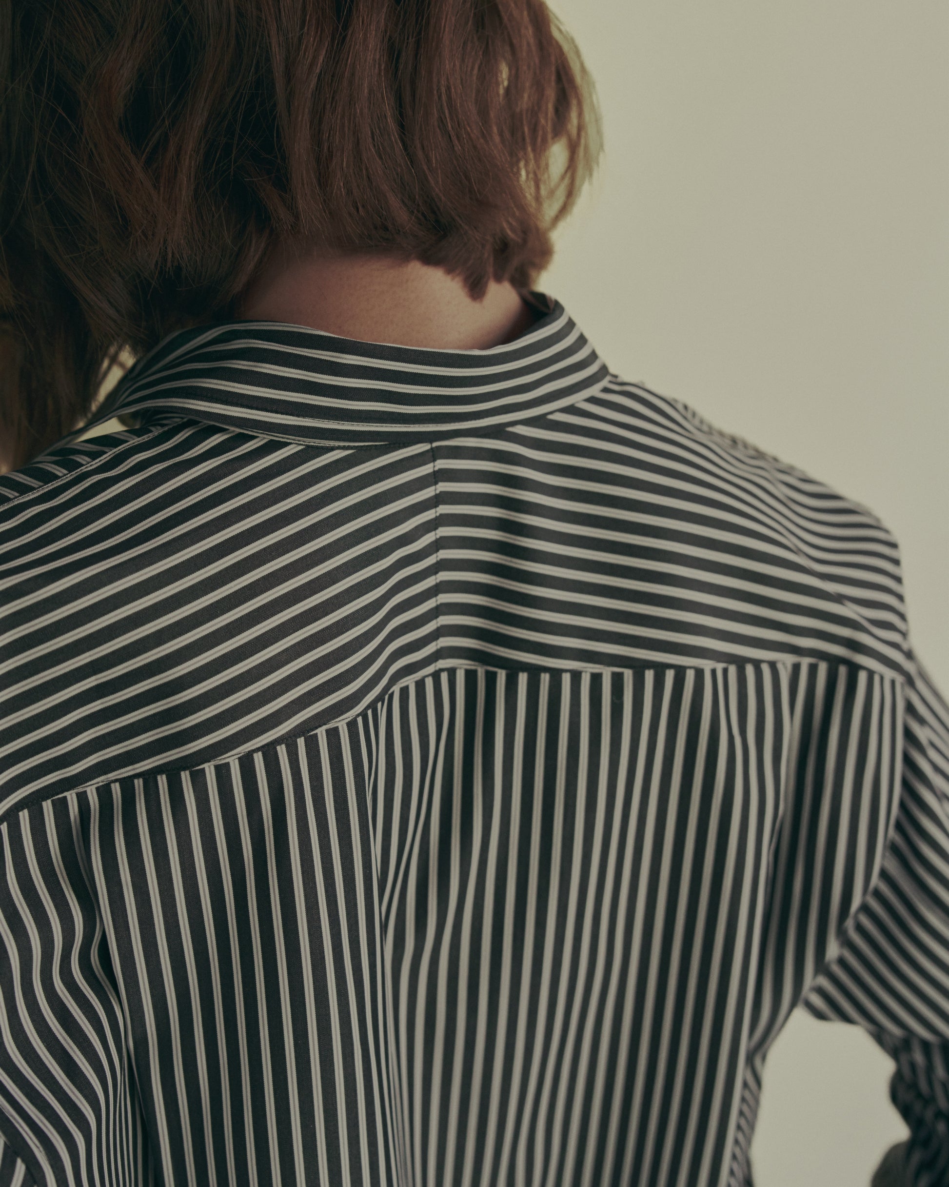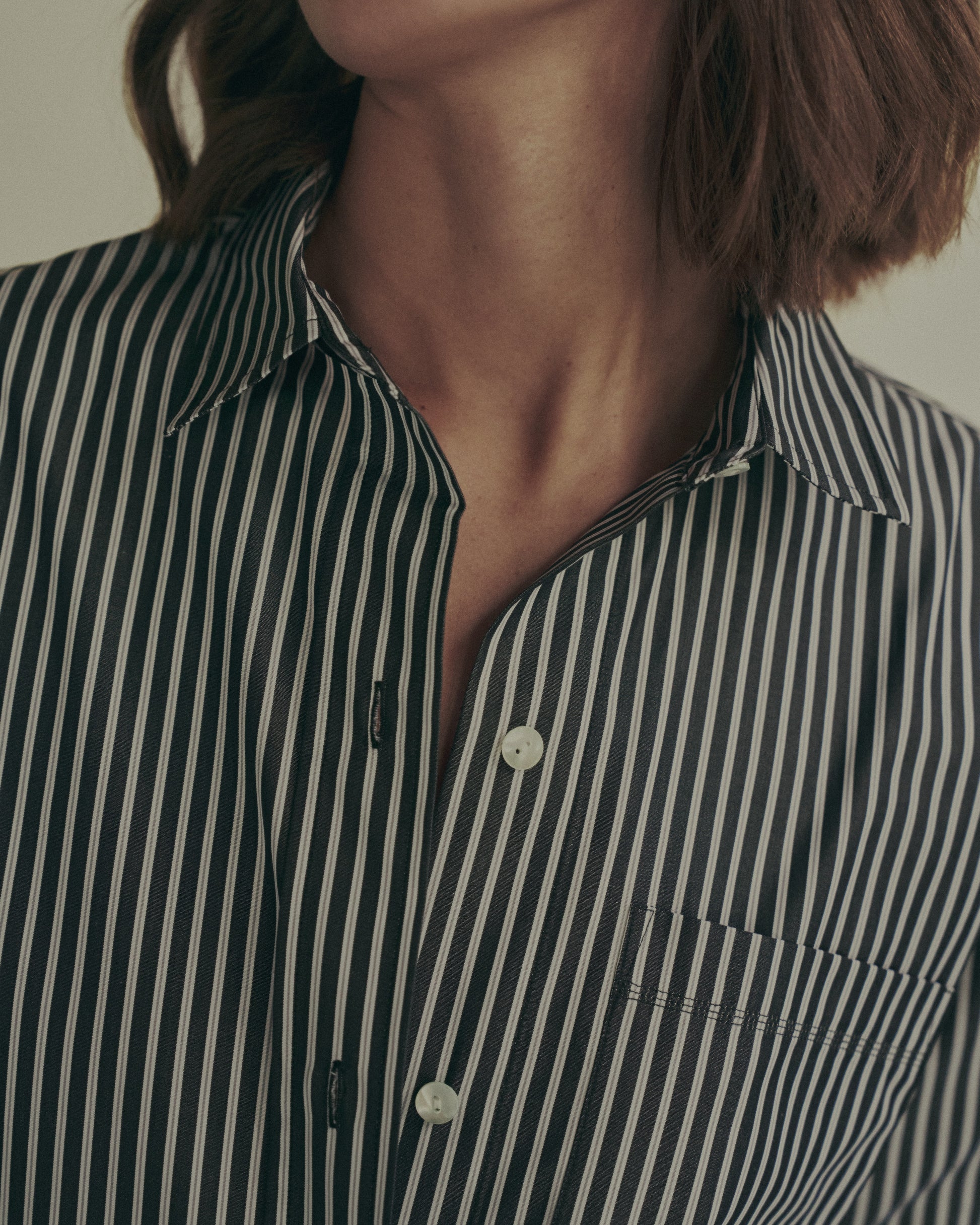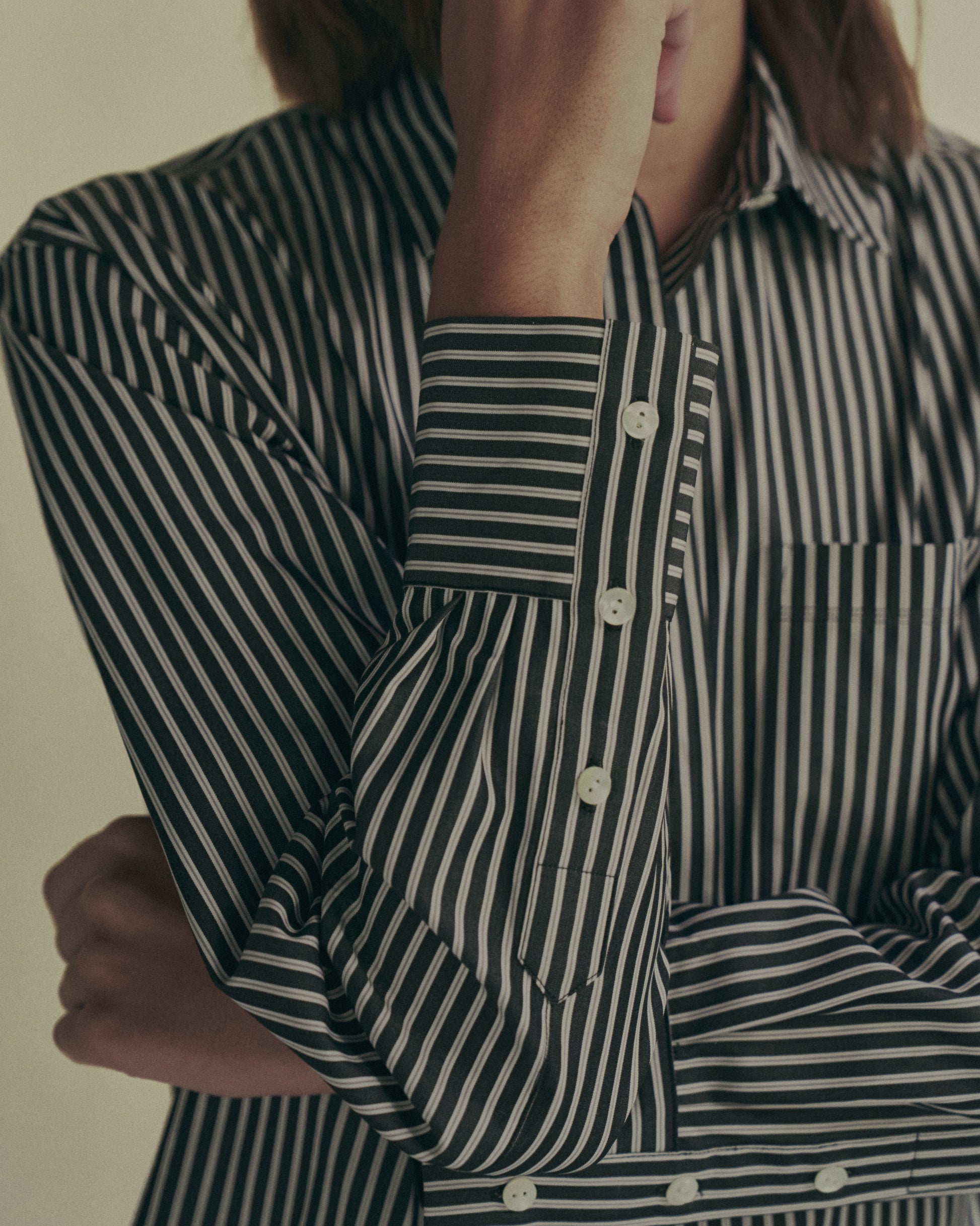 The Boss Dog is our most classic shirting design, inspired by great menswear dress shirts, but seen through the lens of E.M. Reitz. It is a versatile shirt, classic in shape, modern in detail. On body, it offers a confident and powerful silhouette - every position is a power pose. She makes you feel at ease, enlarges your presence, evokes confidence, and brings you joy. This is a shirt that is straightforward but mighty - one might call it “the perfect shirt.” It is equally at home tucked into a great pair of trousers, or worn flowing free and oversized.