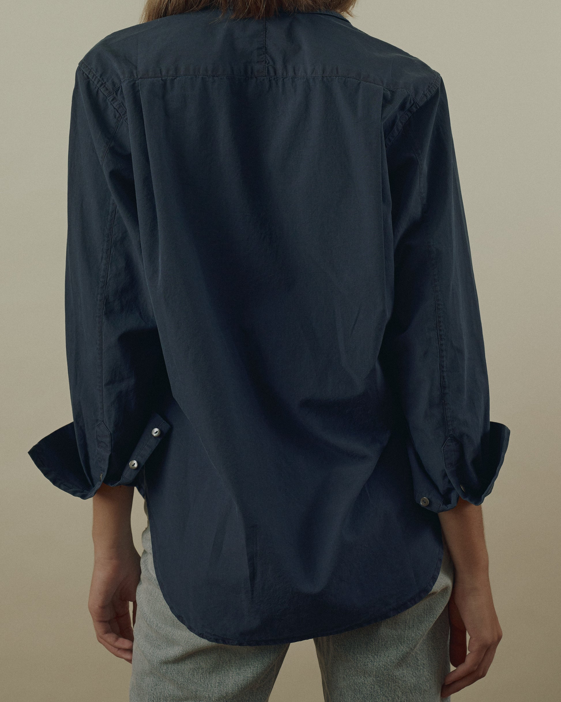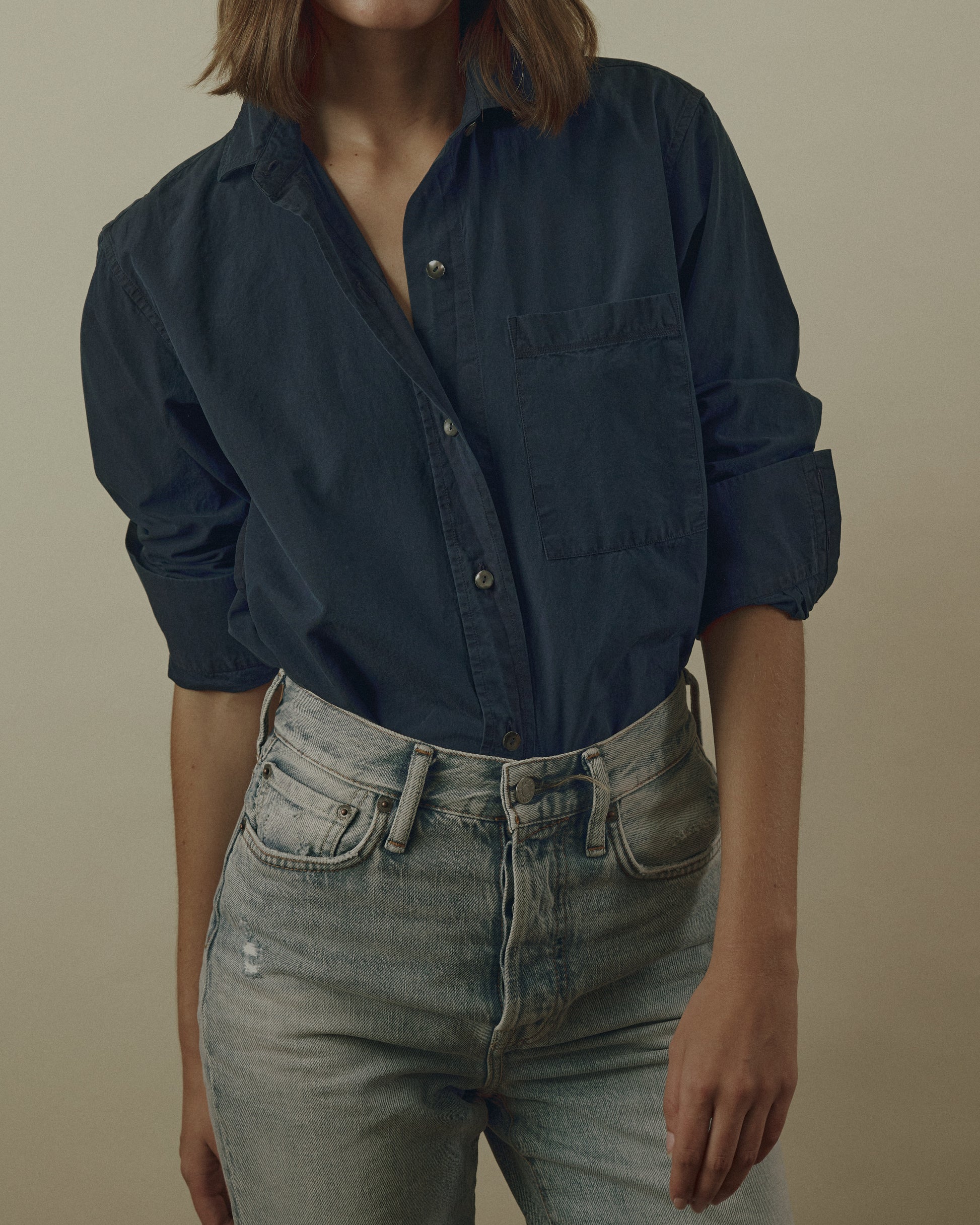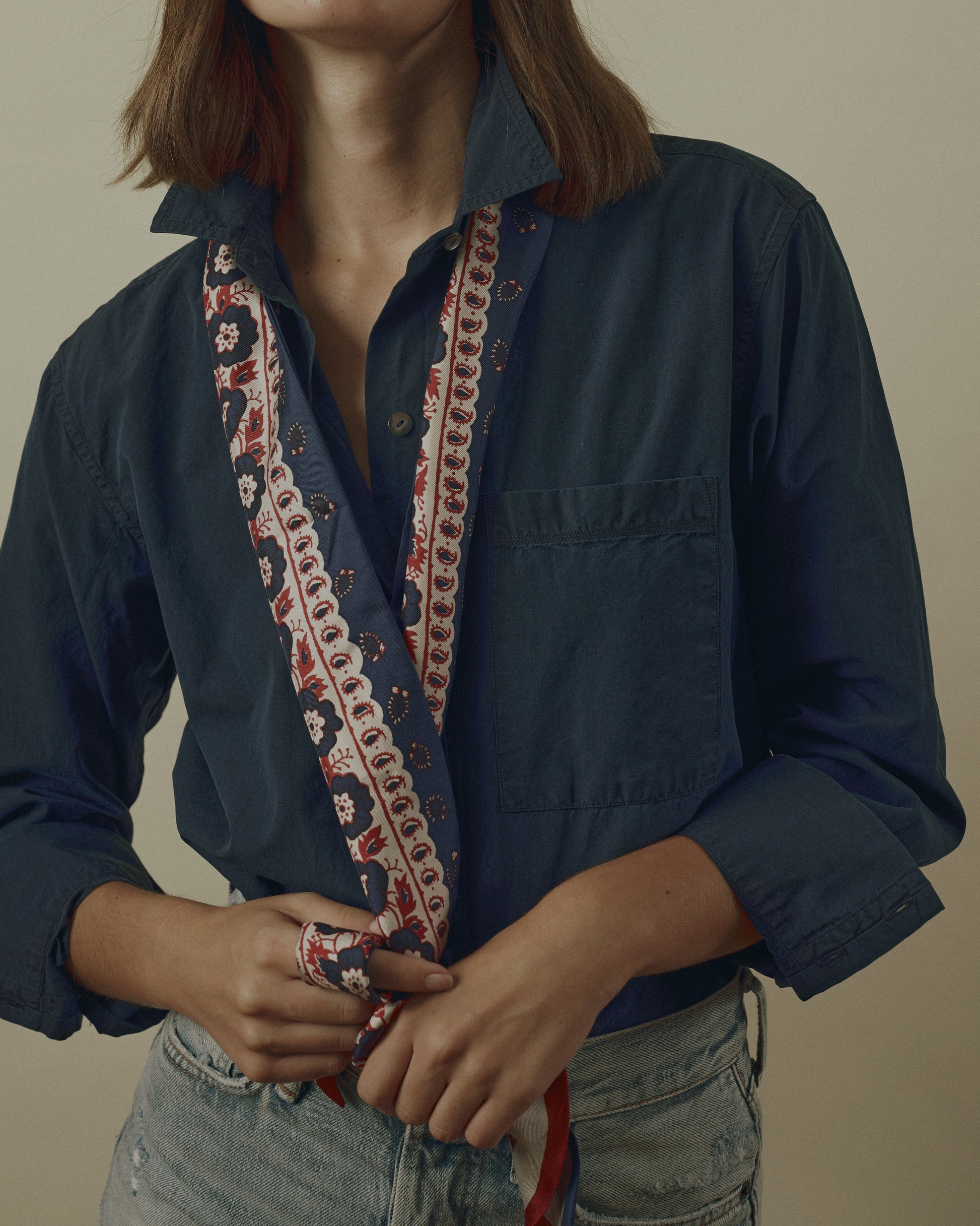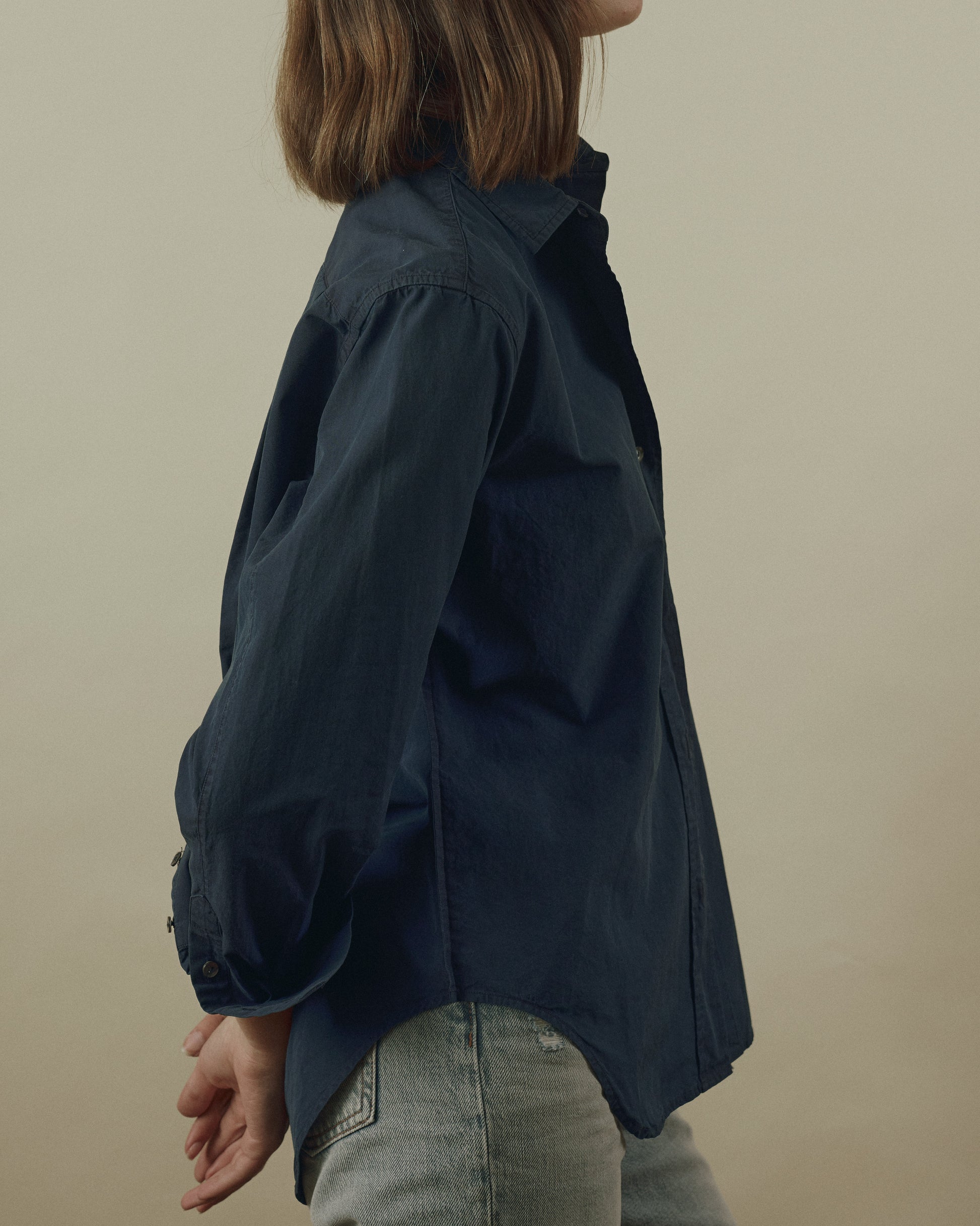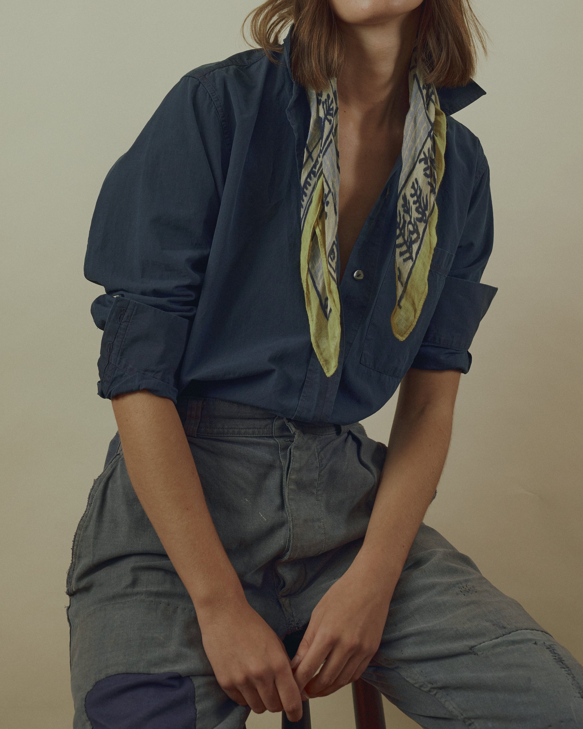 The Boss Dog is our most classic shirting design, inspired by great menswear dress shirts, but seen through the lens of E.M. Reitz. It is a versatile shirt, classic in shape, modern in detail. On body, it offers a confident and powerful silhouette - every position is a power pose. She makes you feel at ease, enlarges your presence, evokes confidence, and brings you joy. This is a shirt that is straightforward but mighty - one might call it “the perfect shirt.” It is equally at home tucked into a great pair of trousers, or worn flowing free and oversized.